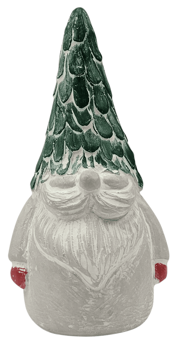 Standing 6.5 inches tall, our Christmas Tree Gnome is full of whimsical charm! His hand-painted evergreen tree hat makes him a standout piece for gnome collectors and Christmas décor enthusiasts alike. Display him on a mantel, give him as a gift, or let him brighten your holiday centerpiece.
