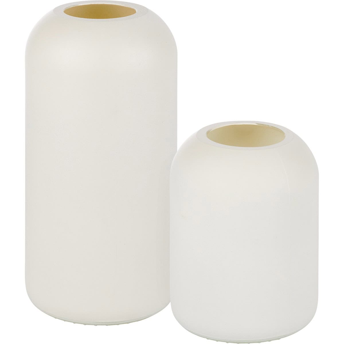 Two different ceramic vases featuring various cylindrical shapes. Our Cylindrical vase features a opening on top to place greenery. A neutral everyday home accent with a variety of display options. Each vase sold separately.