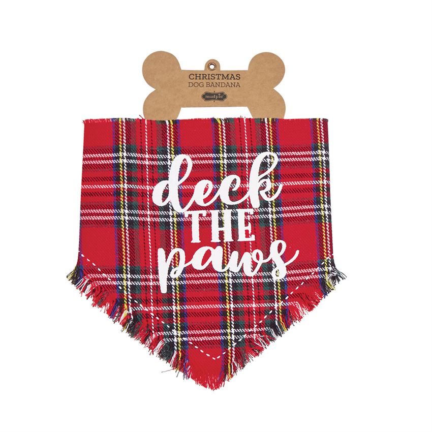 Tartan canvas dog bandana. Features printed sentiment, frayed edge detail and hook and loop closure.