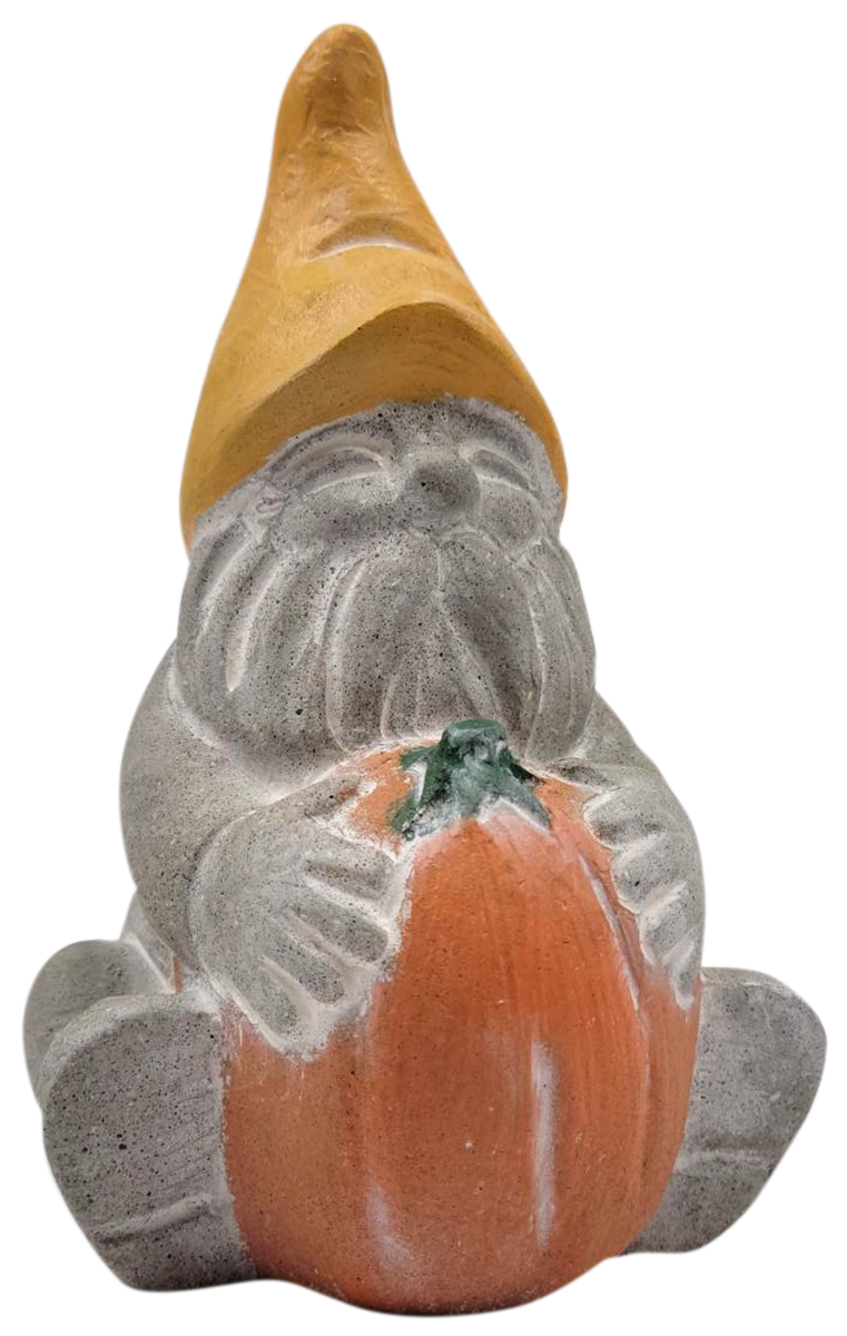 Today a symbol of good luck, gnomes originally were mythical creatures thought of as protectors of treasures, buried underground. Our Harvest Gnome is seated, with a large pumpkin in his lap, a symbol of a plentiful harvest.