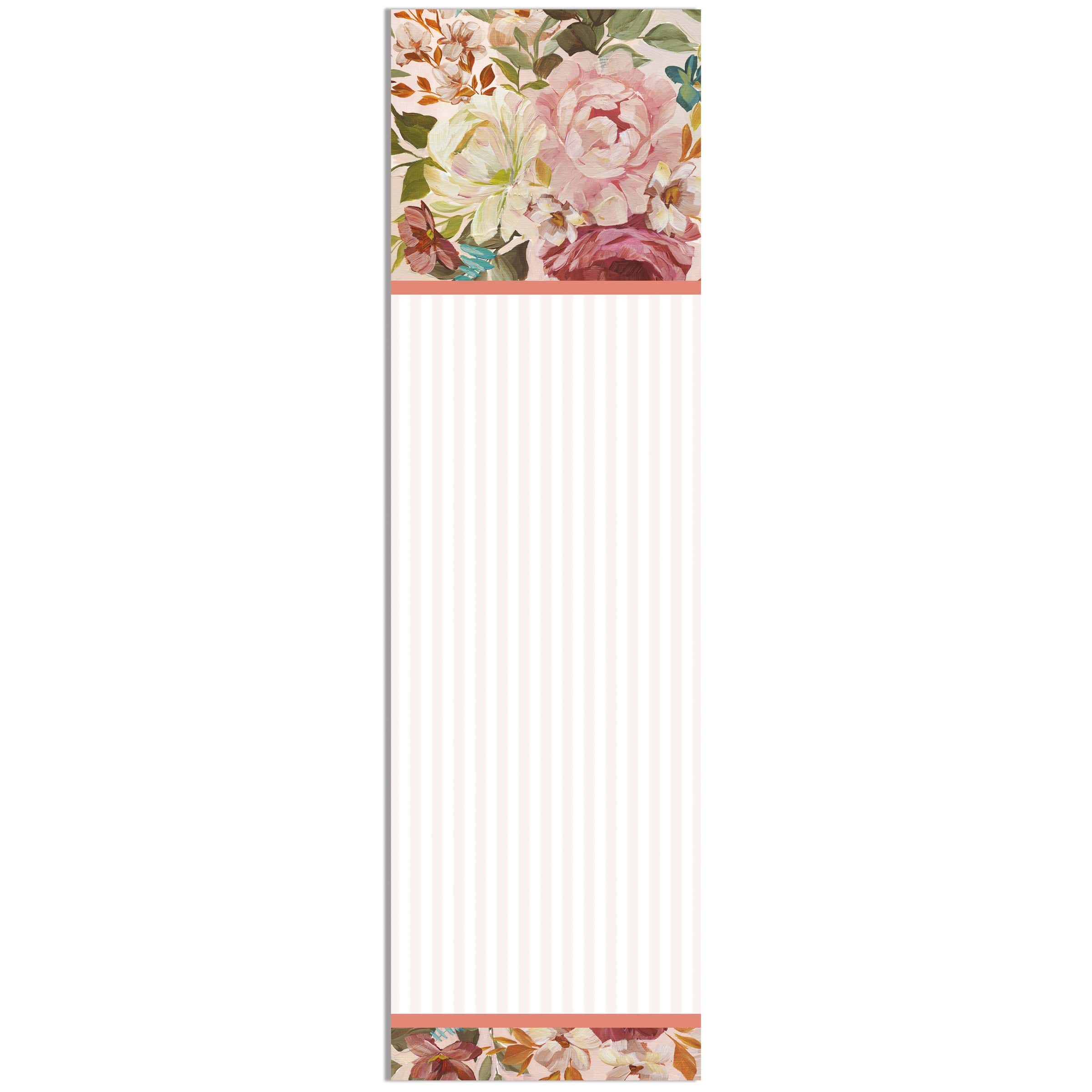 A list notepad displaying colorful designs of cabbage roses with a decorative space to write notes. Cabbage rose designs are replicated from original artwork hand painted in a unique watercolor style. The Cabbage Rose list pad includes 60 pages and a strong magnet to easily hang on magnetic surface for display. Proudly made in the USA. A stylish Valentine’s Day accessory perfect for adding functional style to any space.
