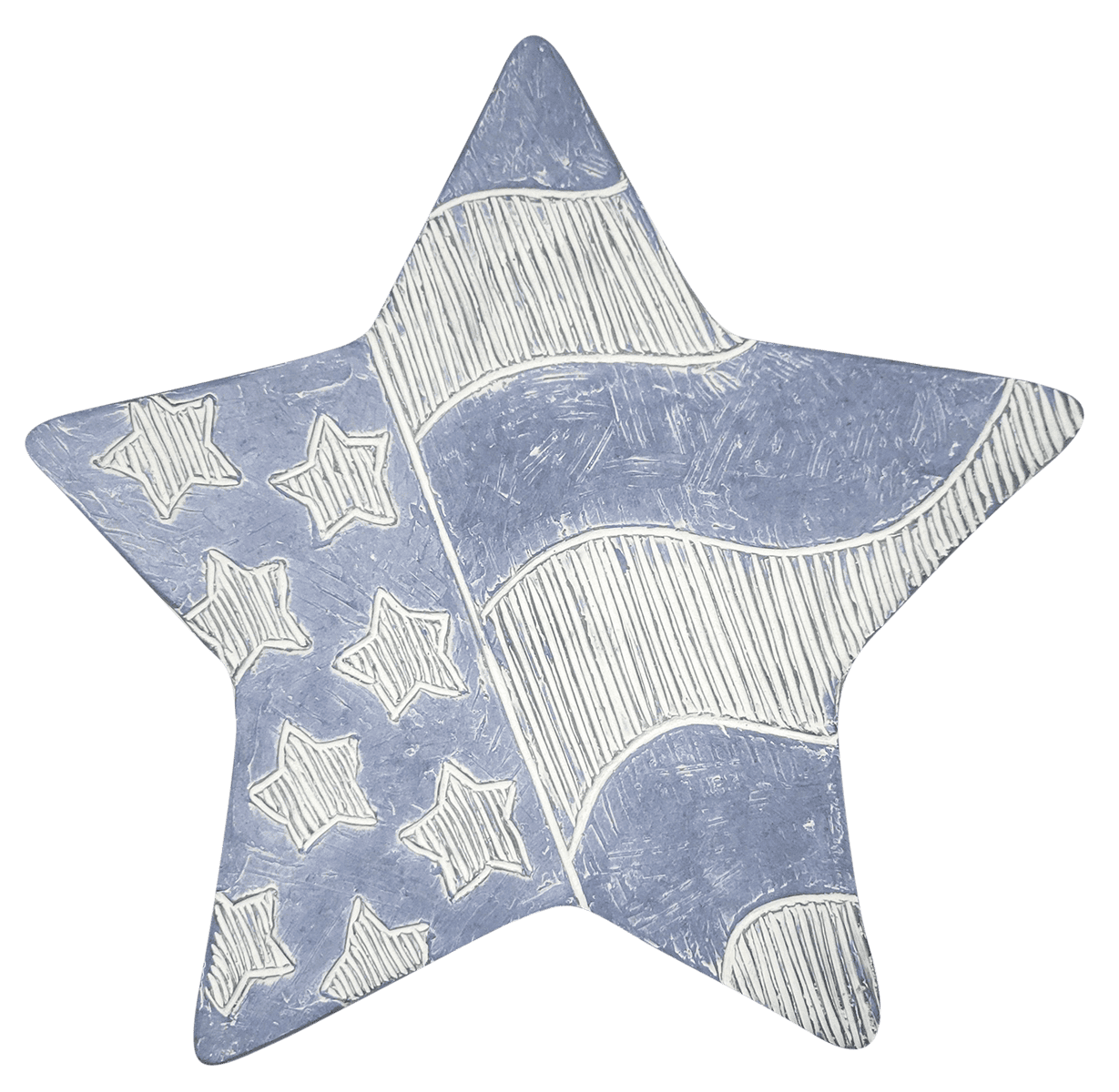 Show your American pride with this blue concrete star, accented with white stars and stripes. Comes ready to hang with a wire on the back—perfect for walls, fences, or posts. A heartfelt way to celebrate the 4th of July, honor a veteran, or remember a loved one.
