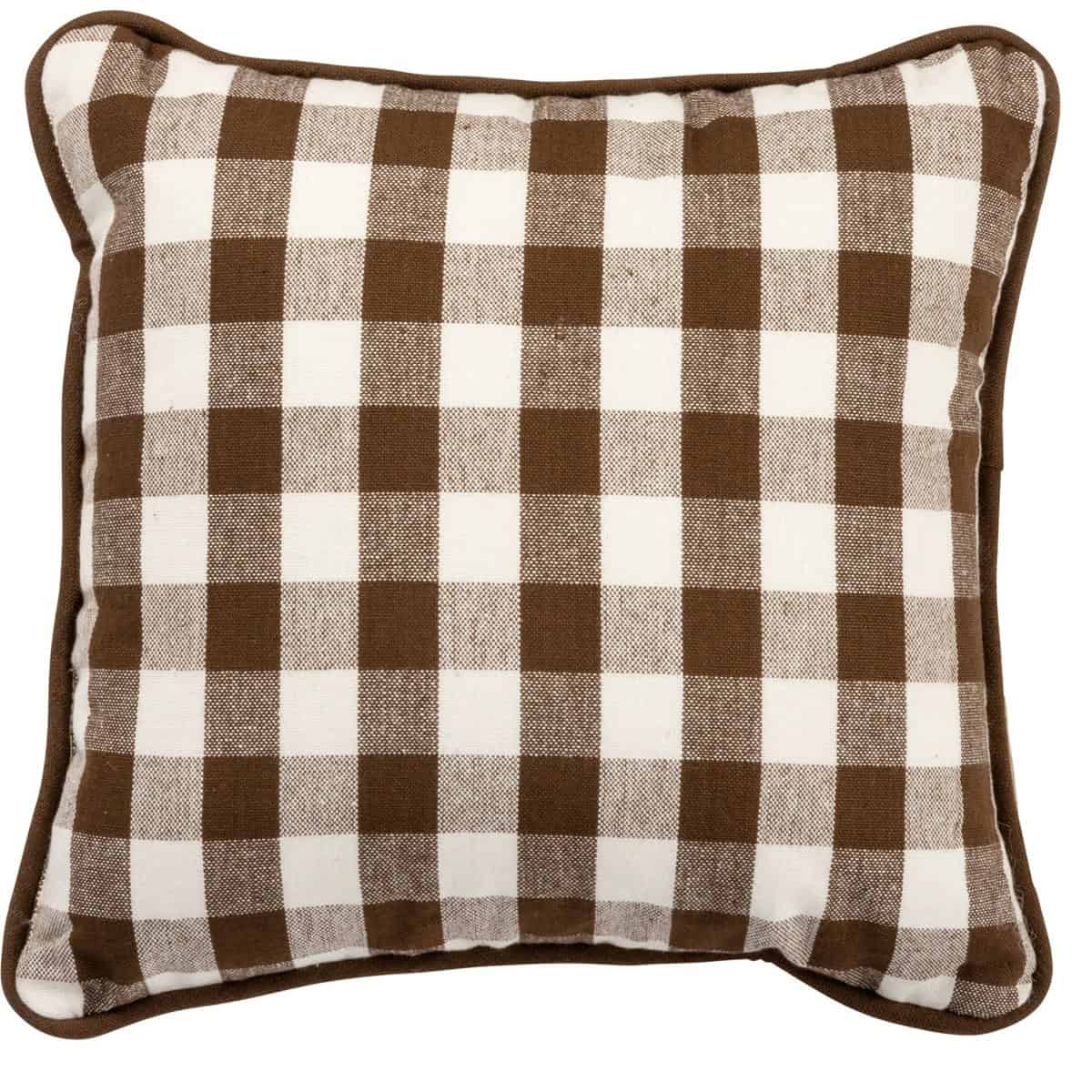 A cotton pillow featuring a double-sided small brown buffalo check pattern and solid brown piping. Polyester filling. This accessory is part of our IB Home Accents line and was carefully selected to complement our unique sculptures.