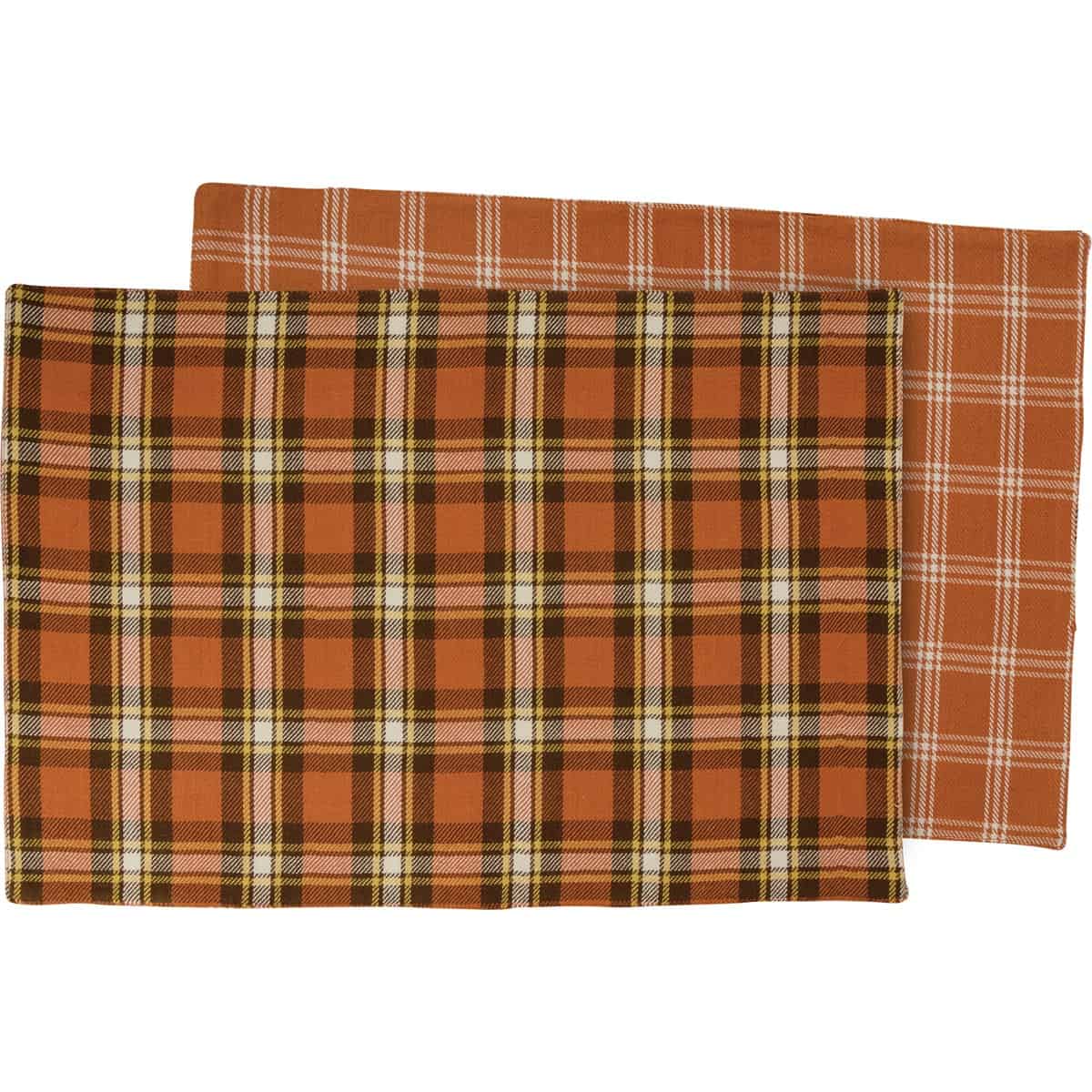 A double-sided cotton placemat featuring two different fall plaid designs. Machine-washable. This accessory is part of our IB Home Accents line and was carefully selected to complement our unique sculptures.