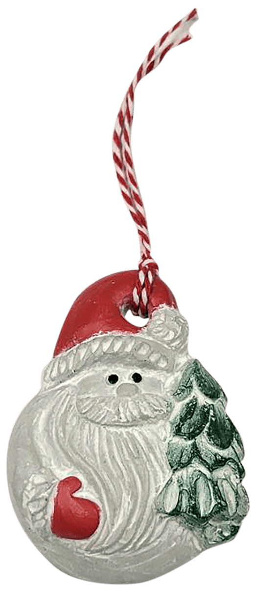 Nothing says Christmas like Santa himself! Our Santa with Tree Ornament features a jolly, round Santa wearing his classic red hat and mittens while carrying a small pine tree. Handcrafted with care, this playful design will spread holiday cheer for years to come.