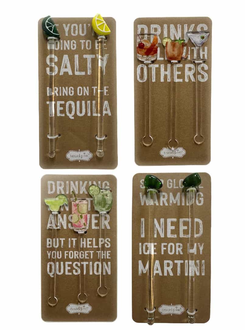 Various stirrer sets with fun drink themes. Each set sold separately.